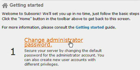 Một khi bạn đăng nhập vào, điều đầu tiên bạn sẽ thấy trong cửa sổ trung tâm là một dấu nhắc với liên kết Change the administrator password để thay đổi mật khẩu quản trị viên, vì vậy hãy nhấp vào liên kết đó. Khi thay đổi mật khẩu, bạn hãy đảm bảo cho nó đủ mạnh để không bị tấn công.